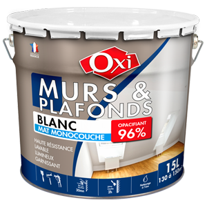 Peinture Oxi Blanc mat monocouche 15L Murs & Plafonds - 96% opacité Référence : DK0100 52,45€TTC / Boite(s) 24 Boite(s) Dernière mise à jour le 18/12/2025 à 13:53 Voir le stock disponible pour toutes les agences Quantité (Boite(s)) Ajouter