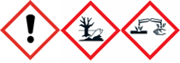 H302 : Nocif en cas d'ingestion. H314 : Provoque de graves brûlures de la peau et de graves lésions des yeux. H317 : Peut provoquer une allergie cutanée. H335 : Peut irriter les voies respiratoires. H410 Très toxique pour les organismes aquatiques, entraîne des effets néfastes à long terme.